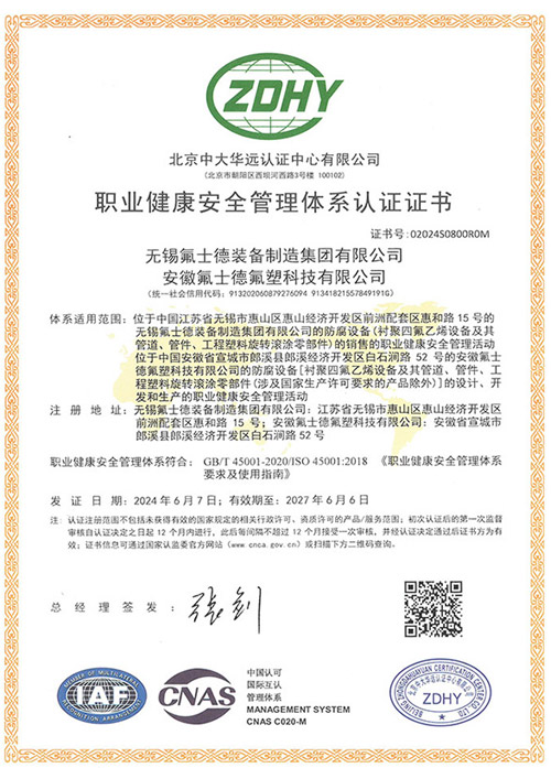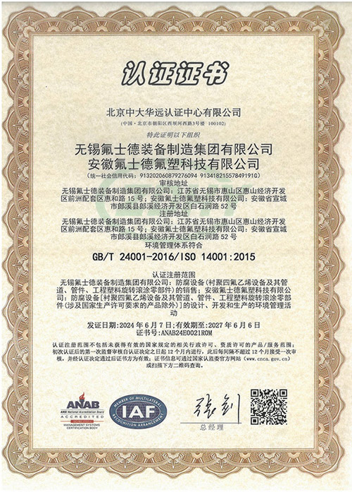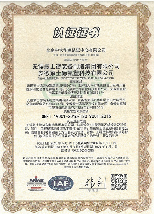 无锡氟士德装备制造集团有限公司(原无锡峰华氟塑防腐科技有限公司,公司成立于2005年3月)位于美丽富饶的太湖之滨、素有“小上海”之称的江南古城无锡。背托长江水道,紧靠沪宁城际高铁、沪宁高速、交通十分便利。 公司占地面积40000㎡,建筑面积33000㎡,设有可生产电子级防腐装备的无尘车间,引进吸收国外的紧衬技术和工艺装备。拥有技术力量和技师队伍,完善的检测手段,严格的管理体系,企业信誉,所产生的防腐设备始终保持着高品质,符合各项标准。 公司主要生产各类防腐大型储罐、运输罐车、反应罐、反应釜、塔器、换热器、过滤器、搅拌器、管道和管件等。采用的工艺有板材紧衬,模压烧结,热滚涂、热喷涂等,采用的材料有PTFE(聚四氟乙烯F4)、PFA、(可溶性四氟乙烯)、PVDF(聚偏氟乙烯F2)、FEP(四氟乙烯—六氟丙烯F46)、ETFE(乙烯四氟—乙烯F40)、ECTFE(三氟氯乙烯—乙烯F30)、PPS(聚苯硫醚)、PP(聚丙烯)、PO(聚烯烃)、PE(聚乙烯)等各种氟树脂和工程塑料。能耐除熔融碱金属以外一切强酸、强碱和有机溶剂,可广泛用于化工、石油、化肥、电子、新能源、冶金、电力、制药、海水淡化、食品等工业行业。 24小时服务电话:13506185351 电话:0510-88217957 公司地址:无锡惠山经济开发区前洲配套区惠和路15号 企业网站: http://www.chuguanwang.com/