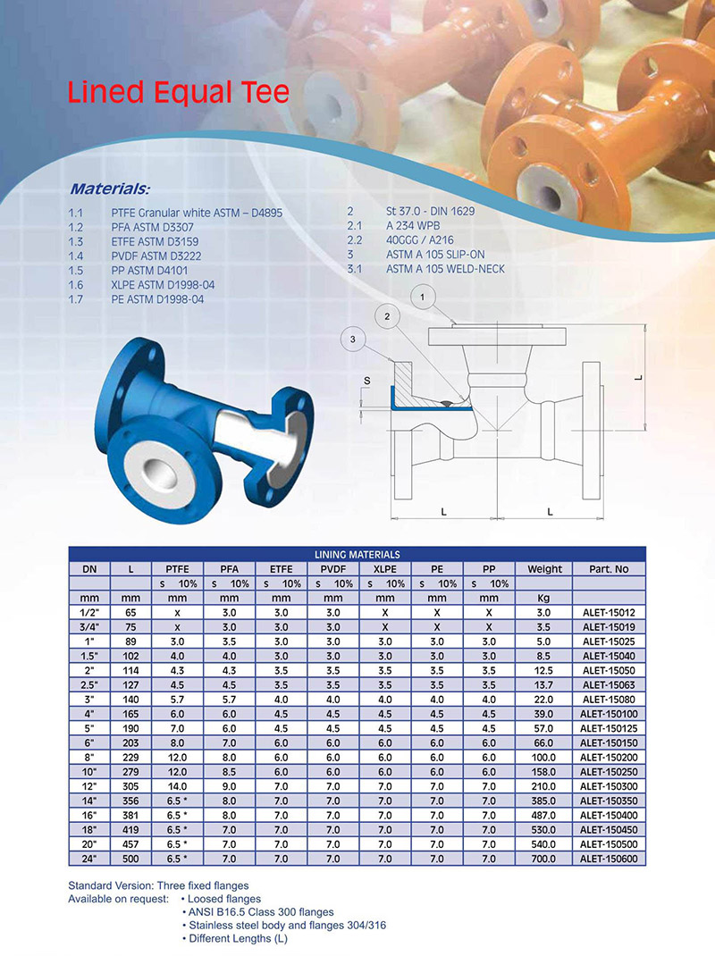 钢衬PTFE、PFA三通