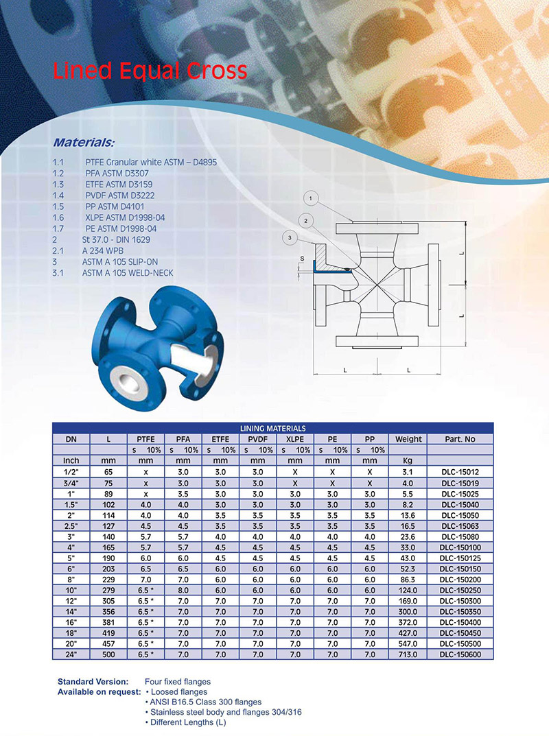 钢衬PTFE、PFA四通